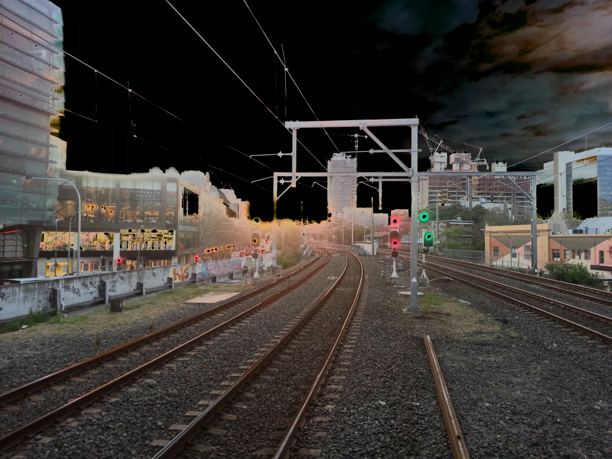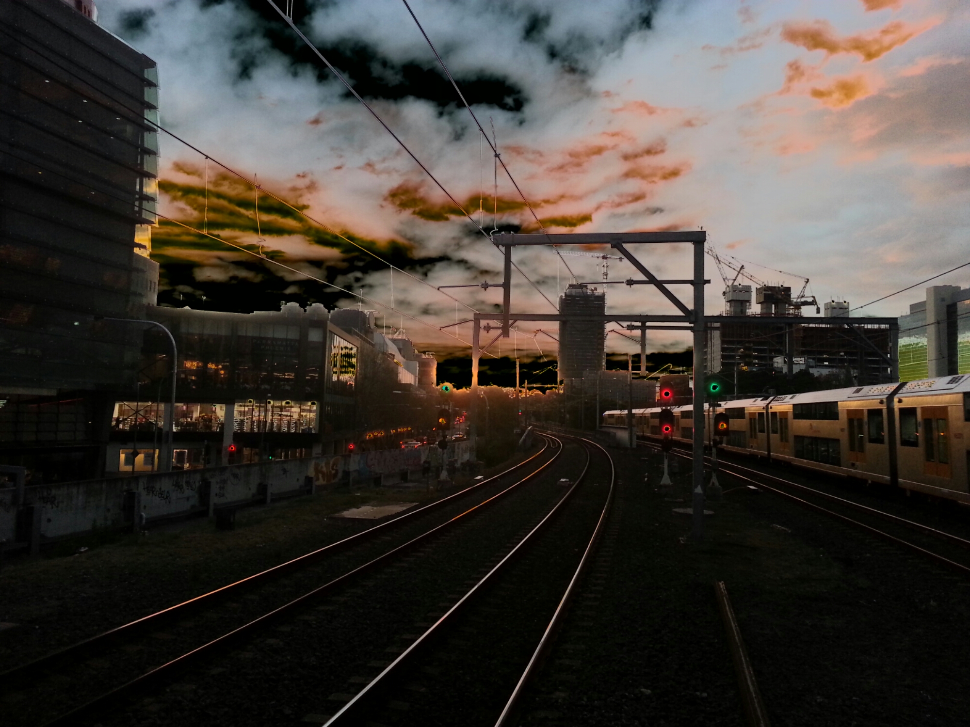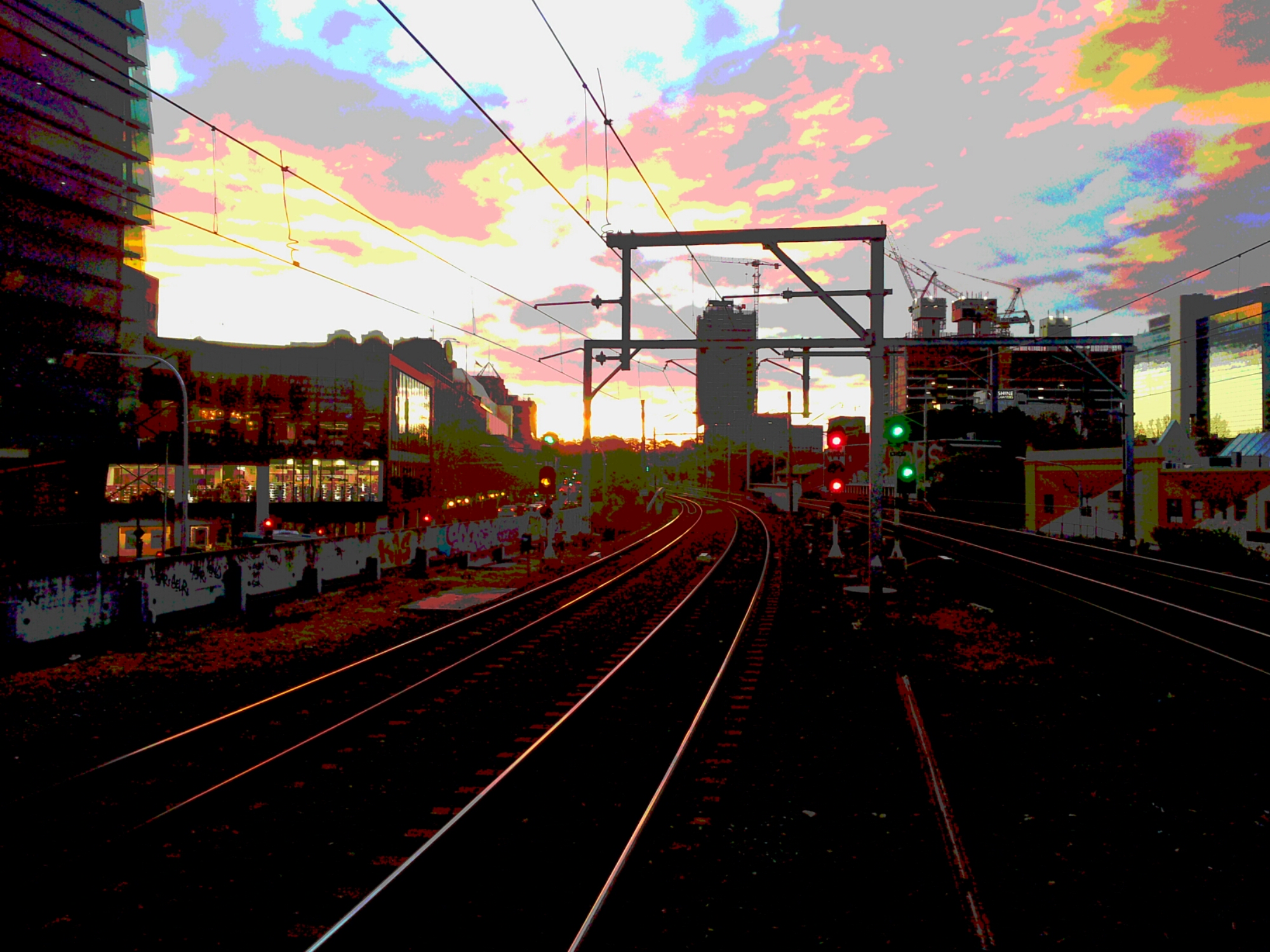 On the way to Parramatta station, I could see the sunset making everything appear bright and hard.