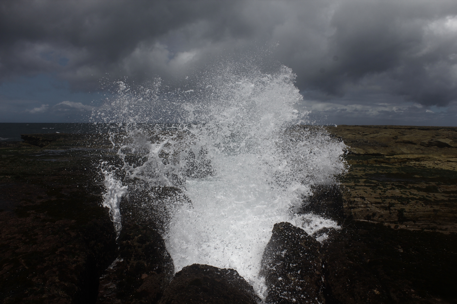 After taking some photos, I put on my raincoat, sat on a rock and took photos of waves before they would hit me.