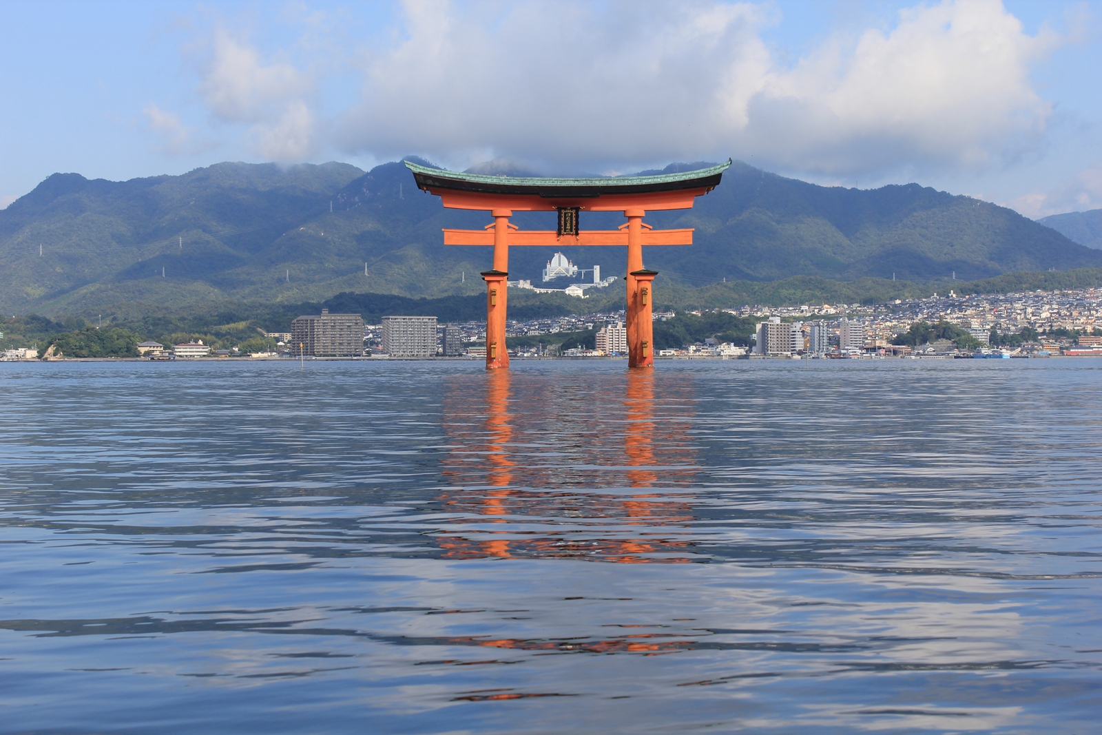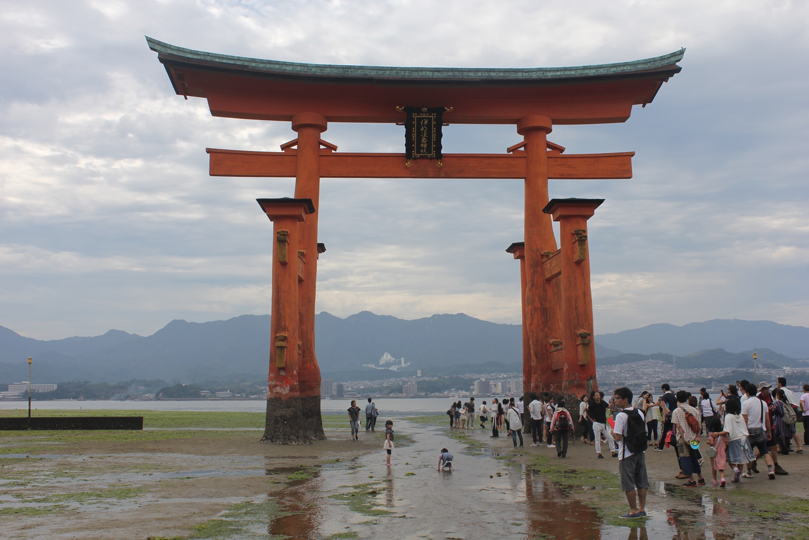 Here are some pictures of the famous torii that can be found at 厳島神社 (Itsukushima Shrine), which is on 厳島 (Itsukushima).