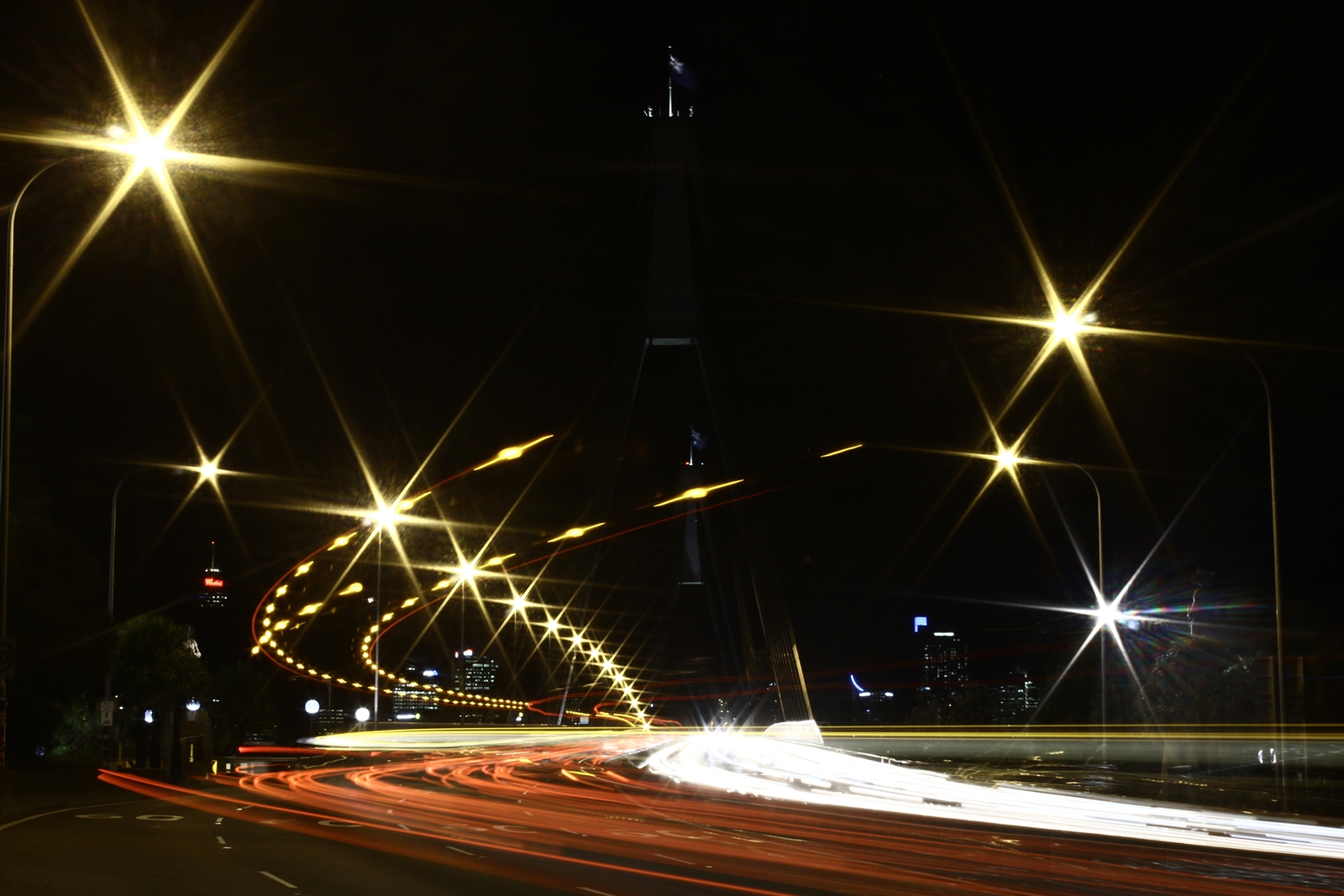I started off taking pictures with Anzac Bridge in the shot, but I ended up feeling that most of the results could have been better, so I ended up taking shots of the traffic before the bridge.