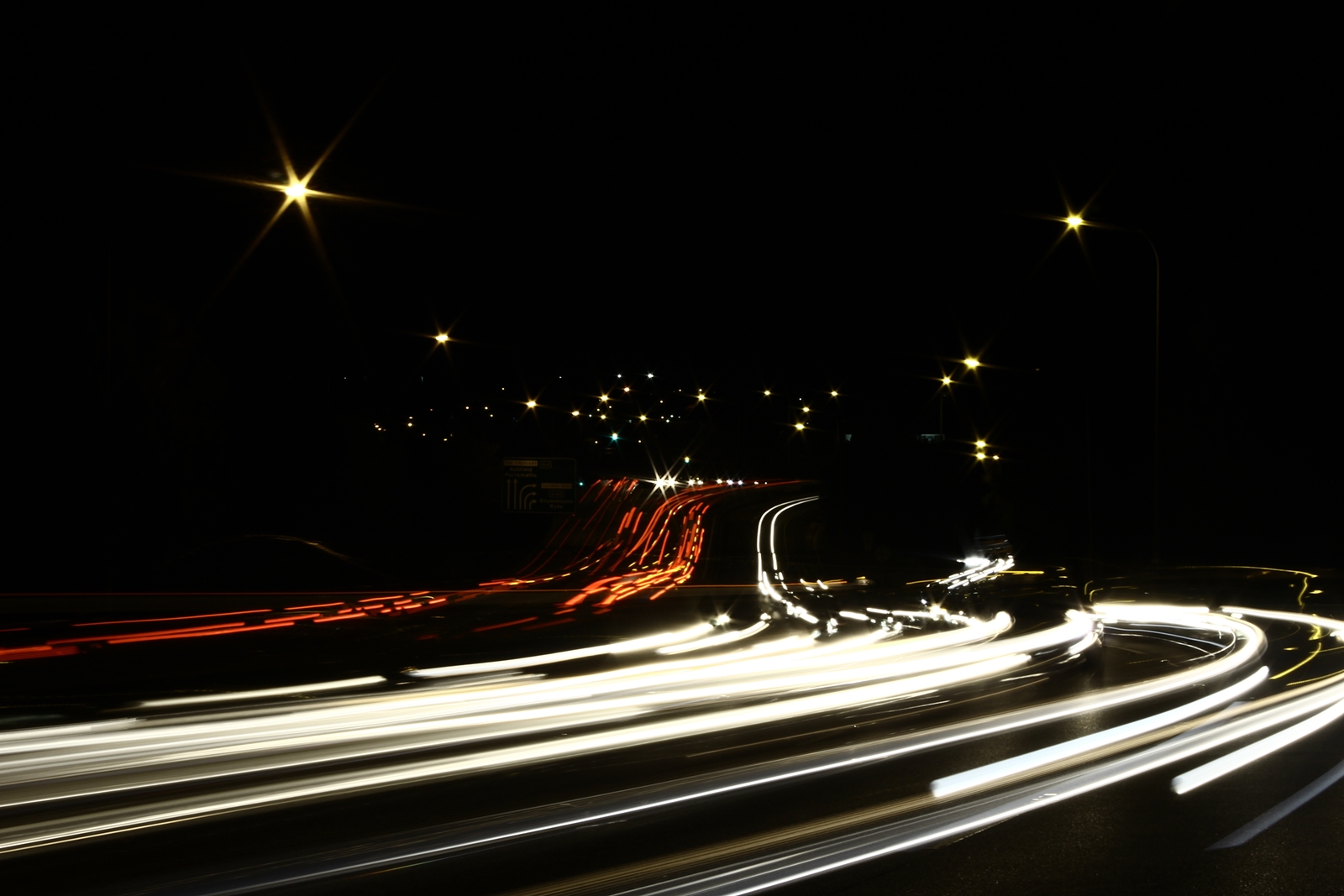 Anyway, I like how the lights bend and curve and contrast with the night.