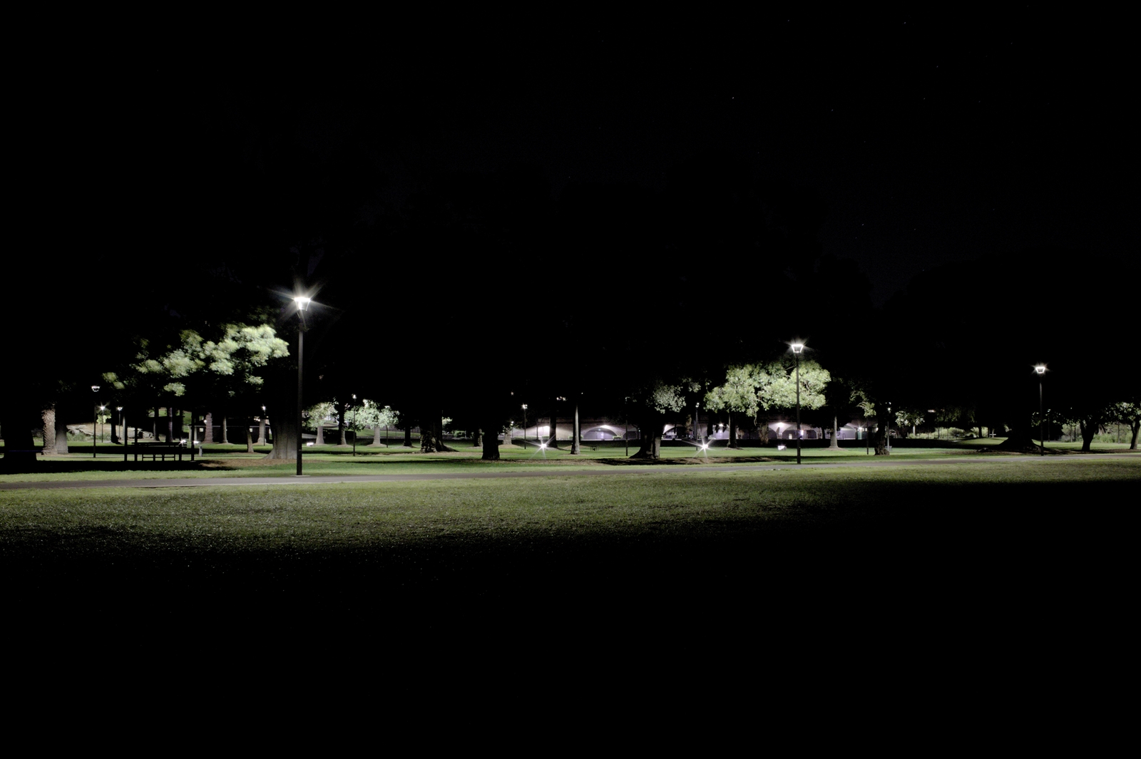 This one I like for how well visible part of the park is framed by the nighttime darkness and how the sky can still be seen as separate from the trees.