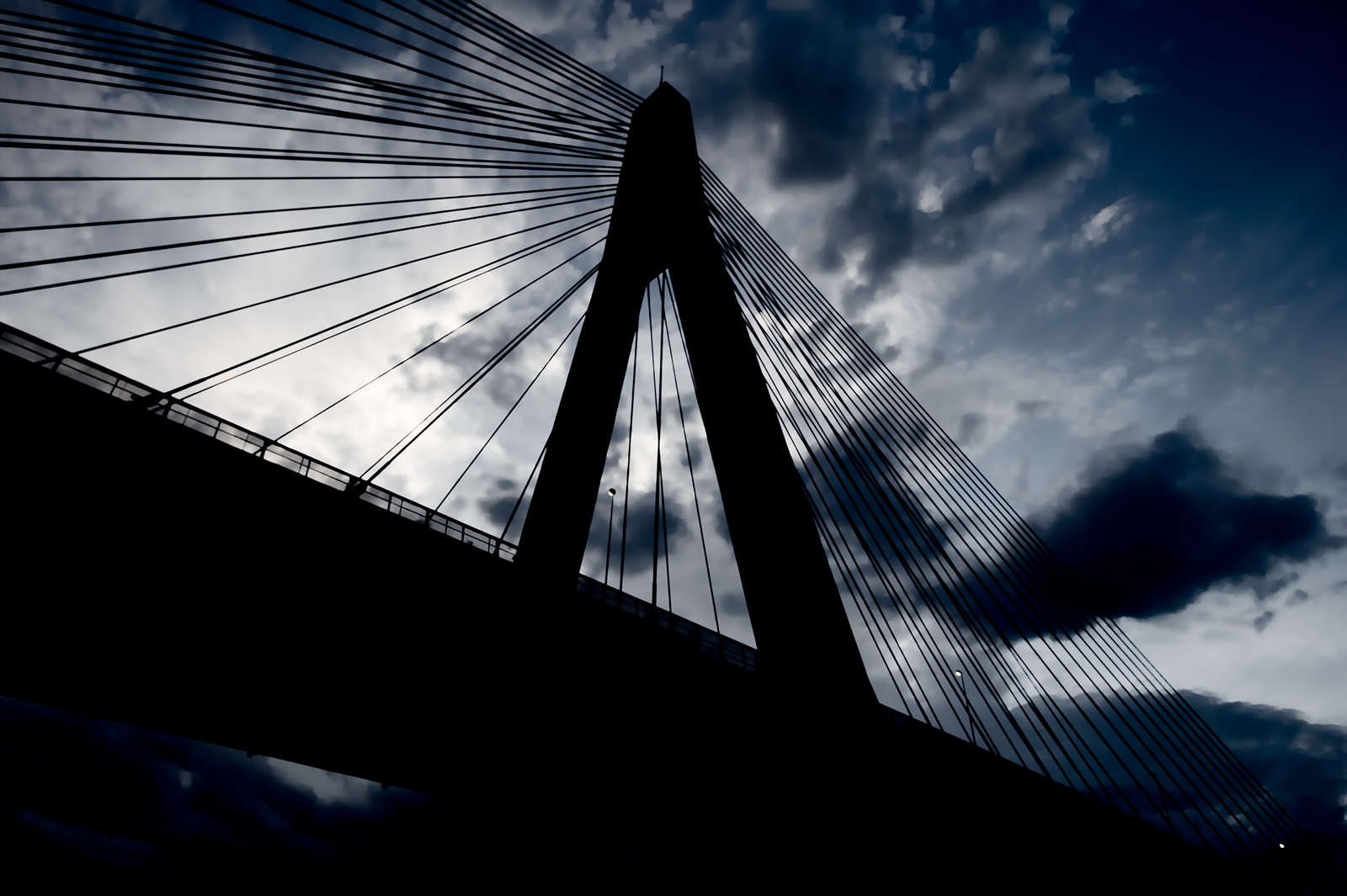 I like how the clouds turned out, how they work with the light and how this section of Anzac Bridge is, aside from three lights, is in complete silhouette.