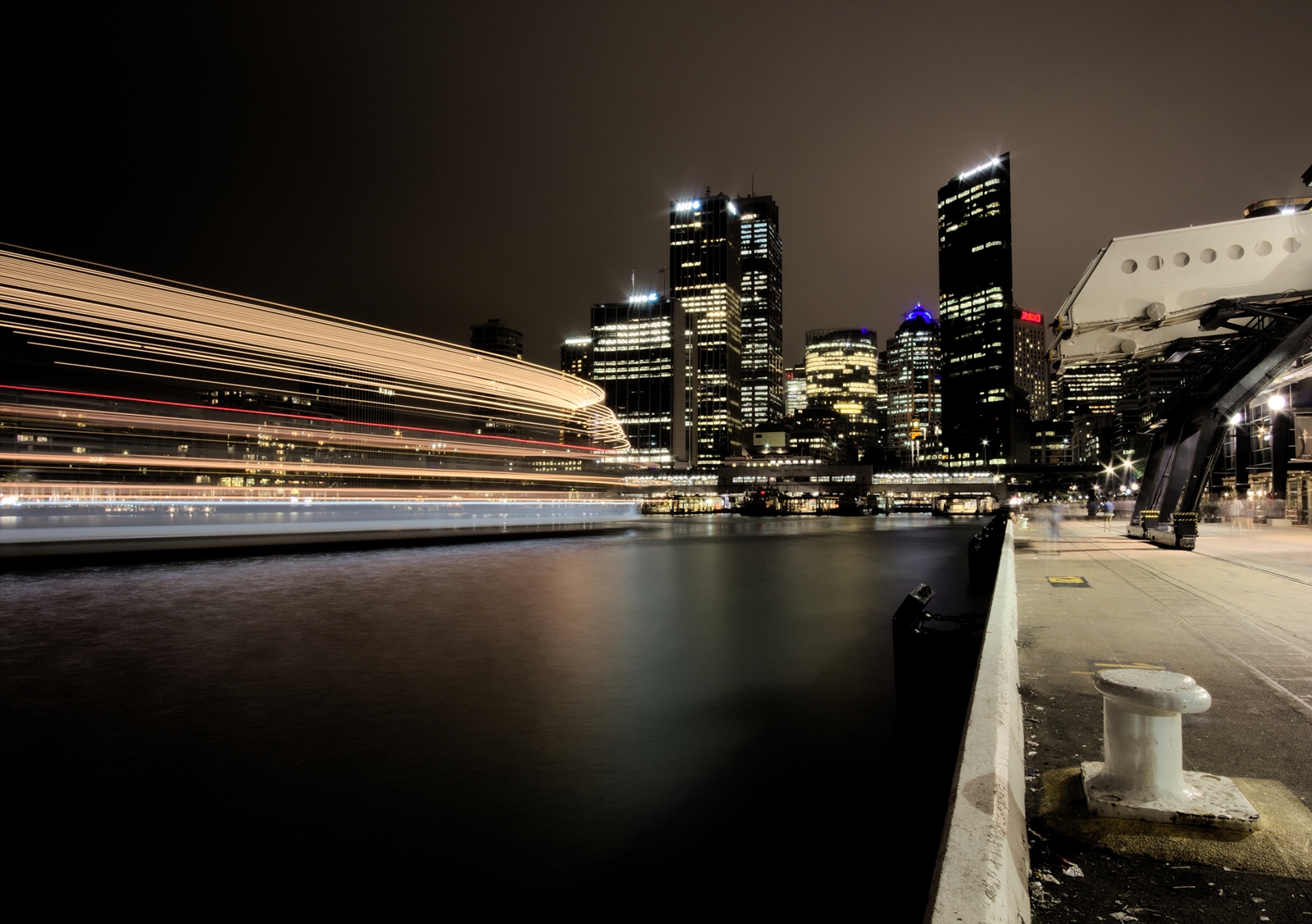 I like the curvature in the lights as well as how they are reflected on the water.