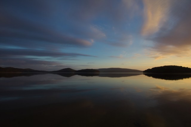 I like the smoothness of the scene in this photo, as well as the pattern created by the clouds and their reflection. I like how the land is reflected with a lot of clarity.
