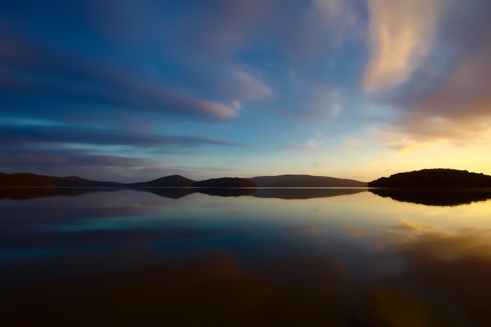I like the smoothness of the scene in this photo, as well as the pattern created by the clouds and their reflection. I like how the land is reflected with a lot of clarity.