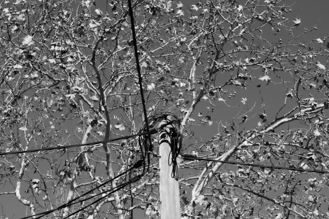 I liked the pattern and the contrast between the power pole and the branches of the tree, so I decided to take a photo, as you can see.
