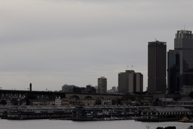Here’s a shot of one side of the Sydney Harbour Bridge along with some buildings from some city.
