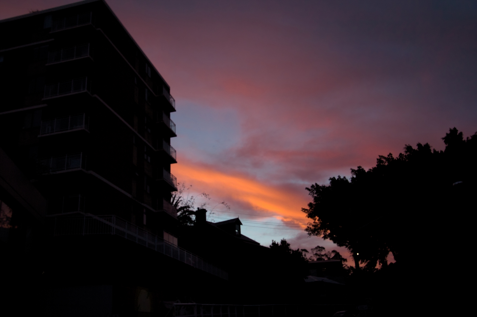 I like the contrast between the clouds and sky, and the buildings and trees.