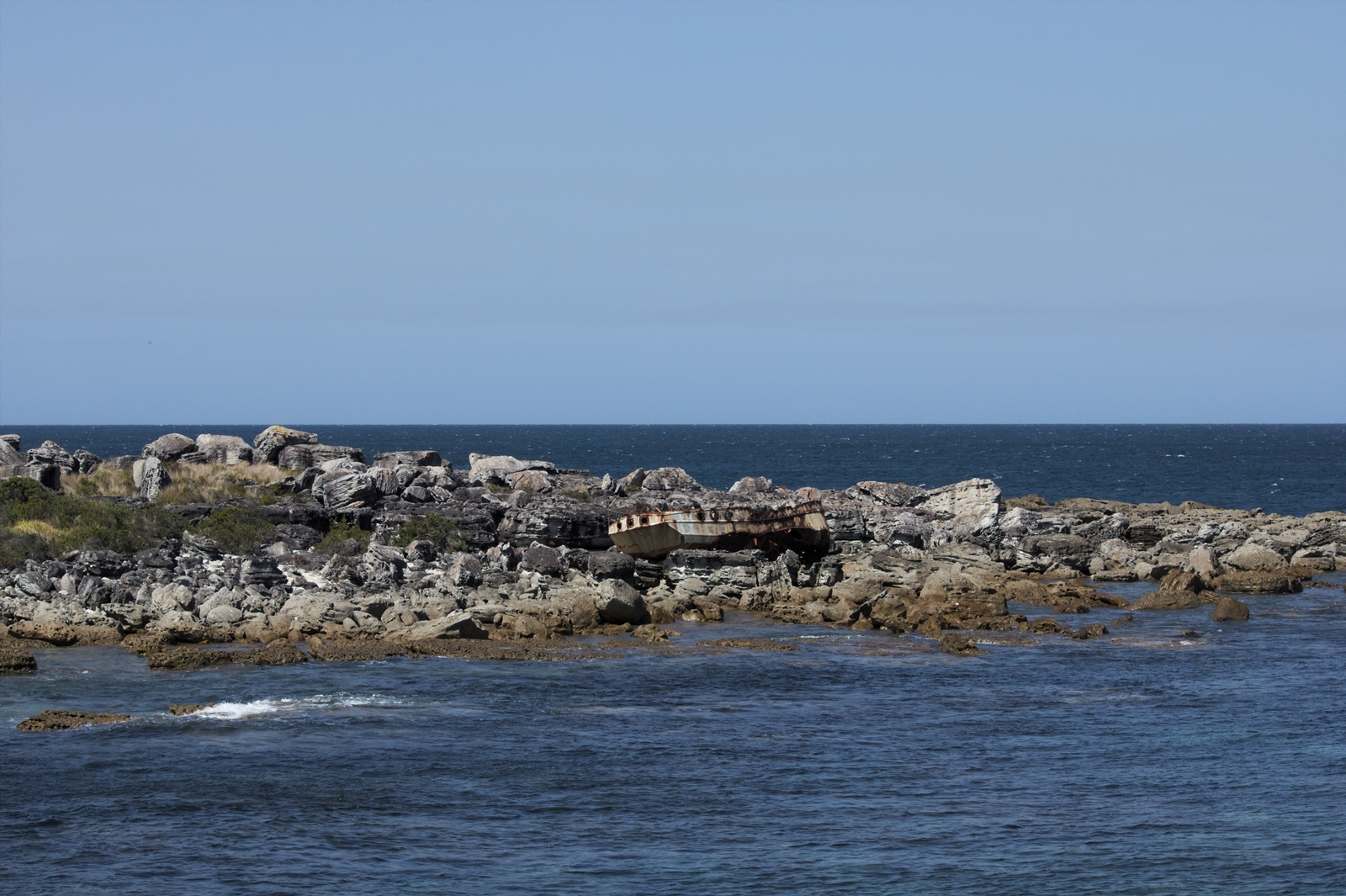 From what I’ve read, the boat was washed up onto the rocks from a storm back in the nineties.