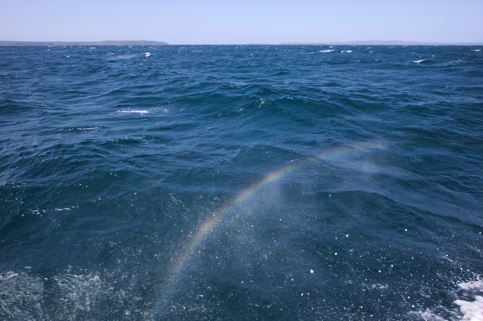 I like that the rainbow is quite visible, as well as the capturing of the expanse of water.