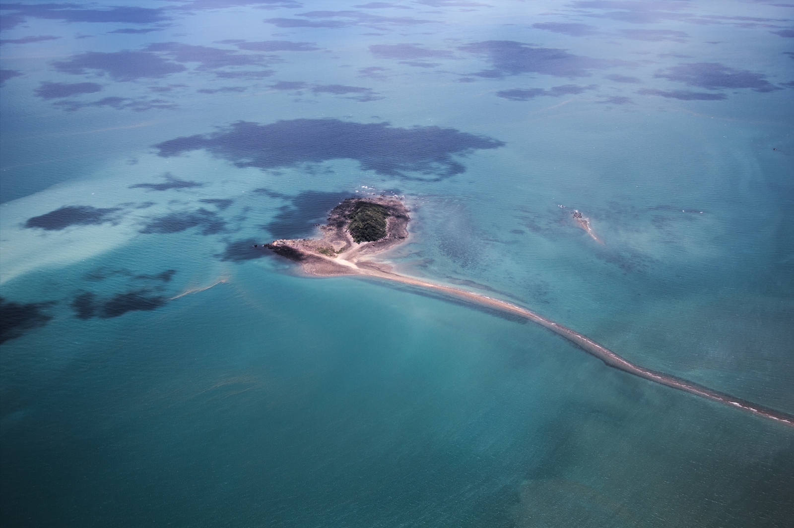 I like the small amount of vegetation almost appearing as though it were a shell, as well as the shadows from the clouds being cast on the water.