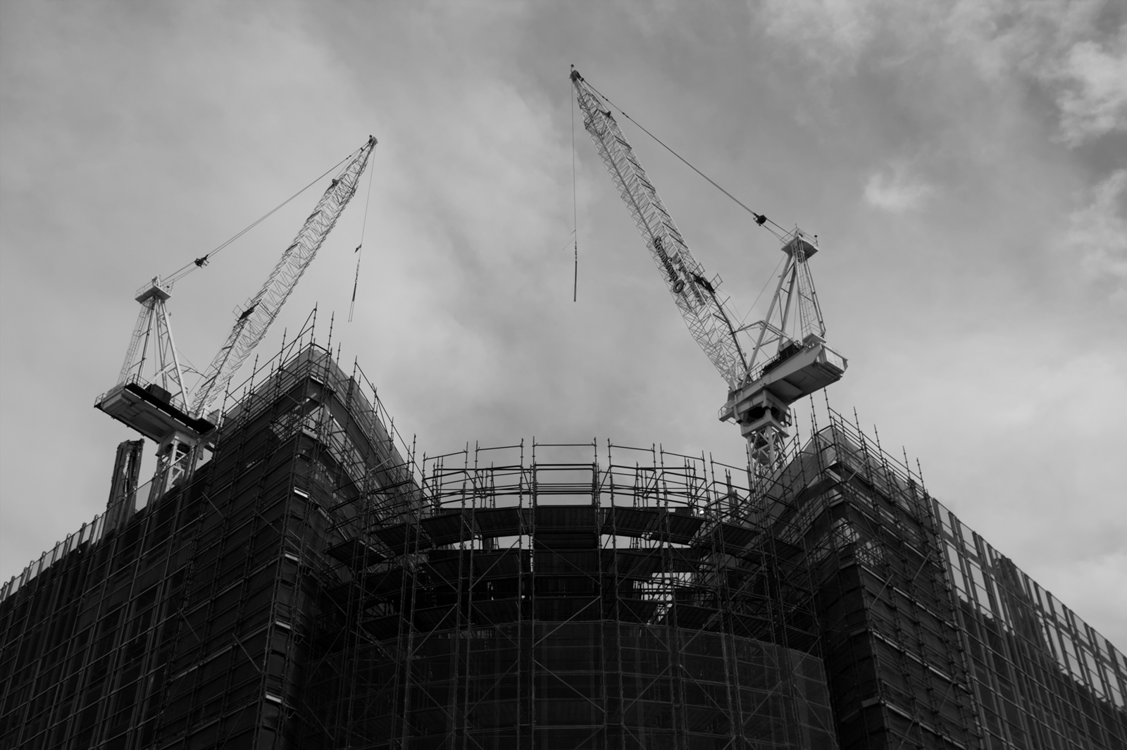 I like the scaffolding pattern, as well as how the two cranes seem to sit on top of everything.