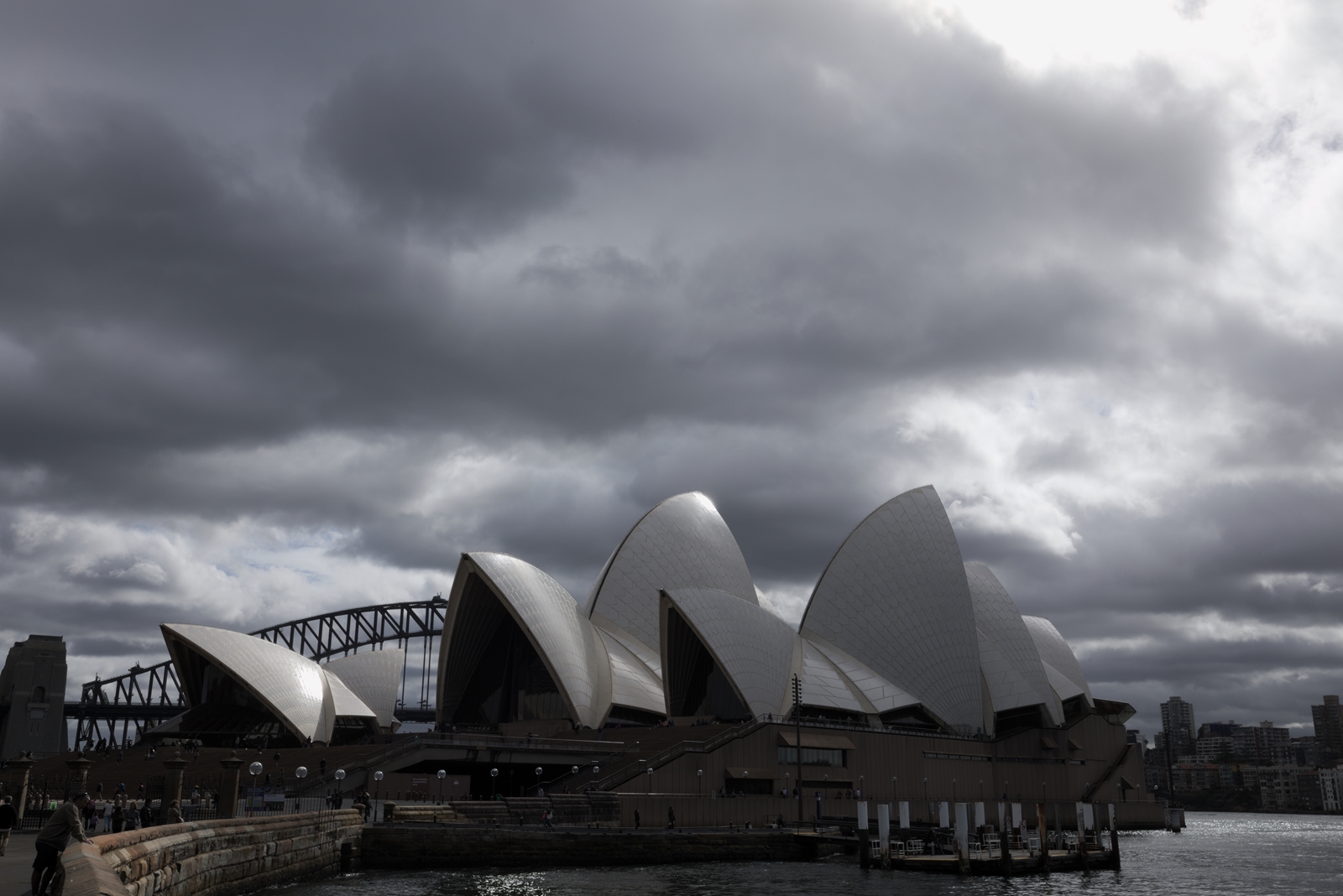 I’m not sure as to how common this view of the opera house happens to be, but I do like that in this photo the view allows for a display of the interaction between the overcast sky, the light that is coming from it and the Sydney Opera House itself.