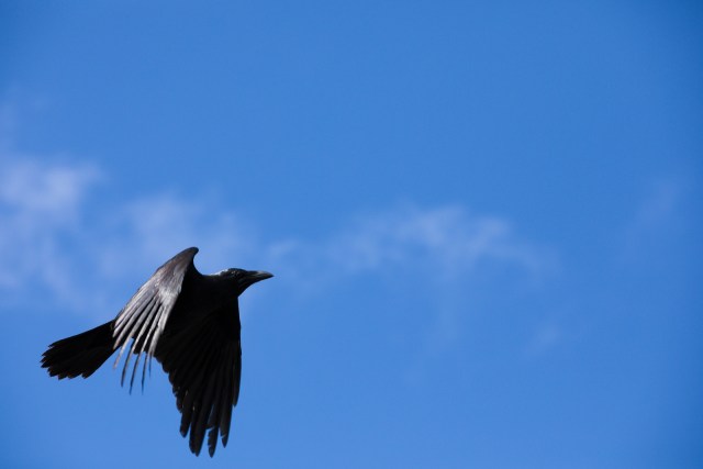 Not the greatest of photos, but I do like how they show the form of these crows as they move through the air.