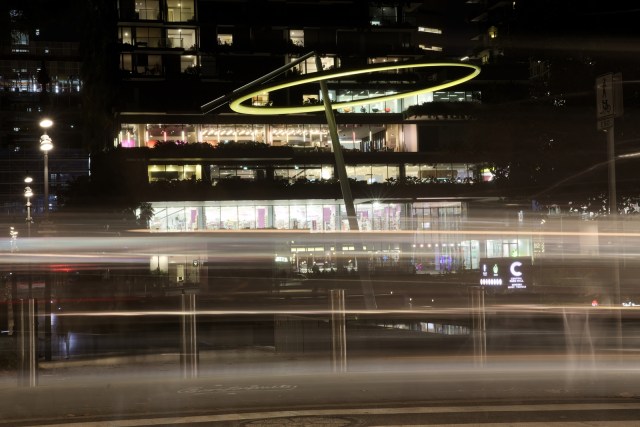 I also like how it contrasts with the stillness of the buildings and the sculpture.