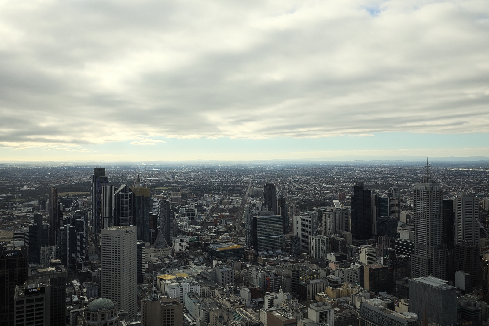 I like how the buildings nearby are framed by the urban sprawl that lies beyond.