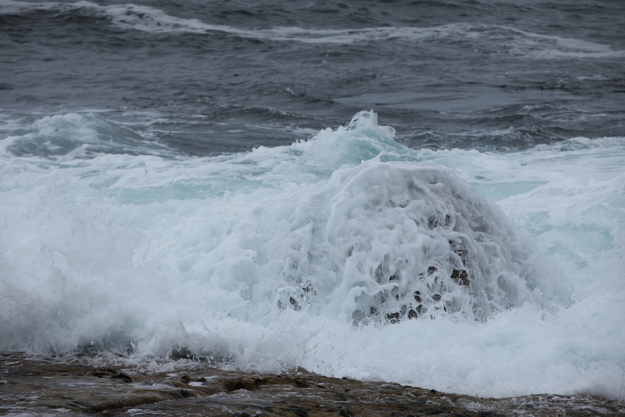I think that the rock works really well with the wave. Water cascades down it and crashes around it, spreading out for a brief moment before coming back to something closer to a rest.