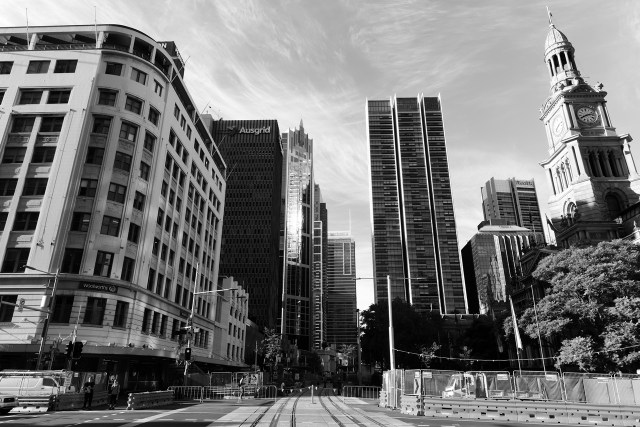 I like the strong contrast from the shadows and I also like how there’s a few different styles of “Architecture” in the shot.
