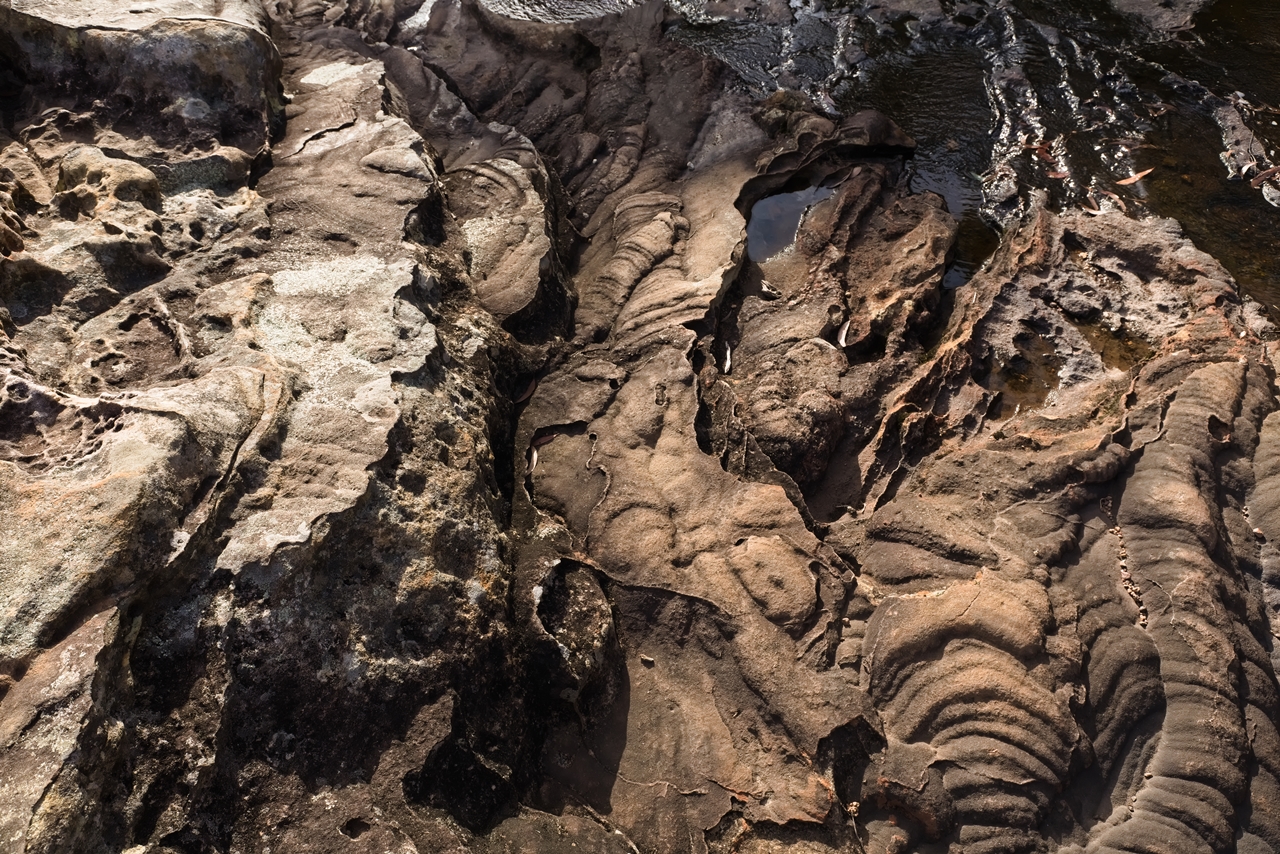 I think that the patterns in this rock are interesting. I’m guessing that the formation of the ripples in the rock are from lava cooling, but it’s merely a guess.