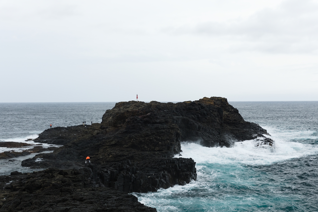 I like the strong contrast between the geology of Blow Hole Point and just about everything else in the shot. I think that it helps to draw attention to the landmass but it doesn’t prevent the eyes from wandering.