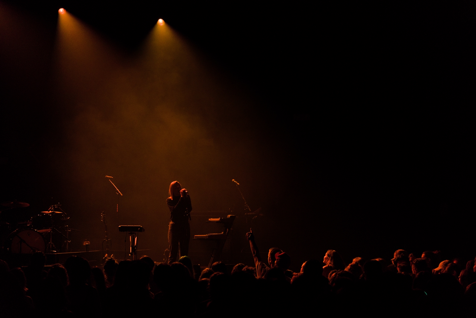 Nyxen is alone on stage, but holds the attention of a crowded audience.