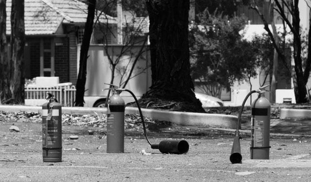 Unfortunately I can’t lay claim to the positioning of the extinguishers, though I wish I could. The way they sit gives a slight sense of depth that I appreciate.