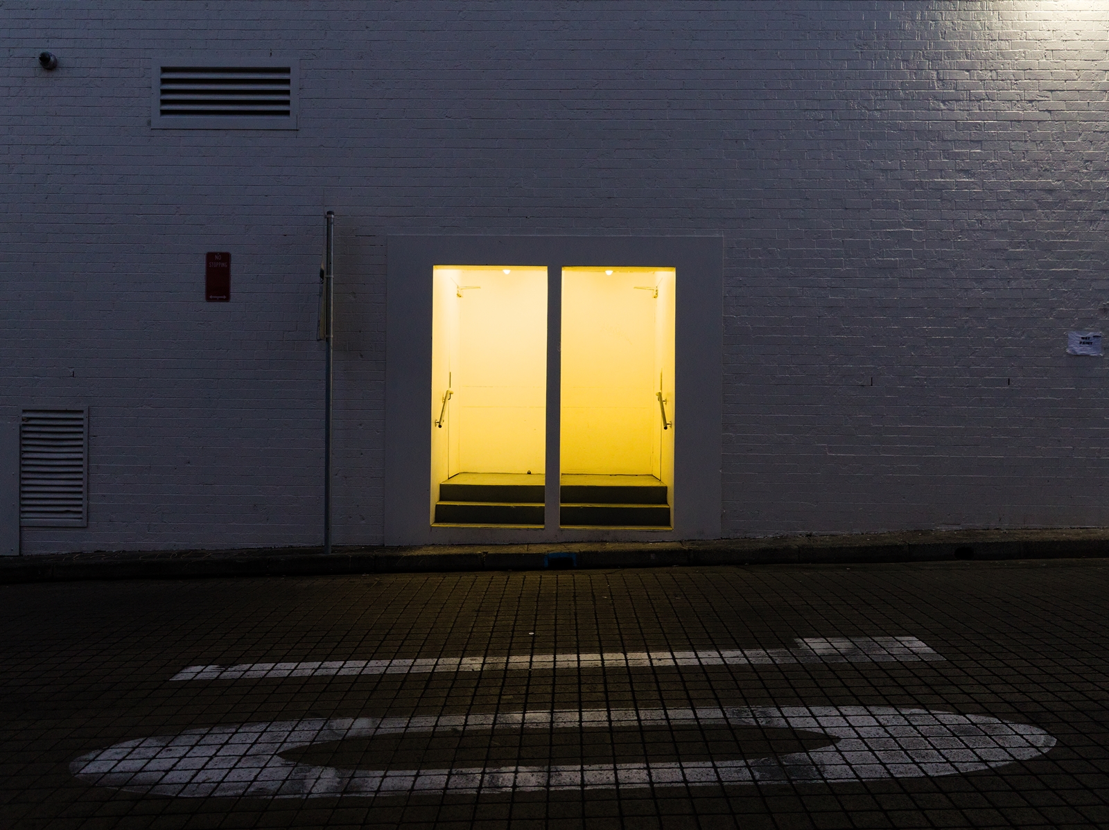 I really like how the exit light contrasts with the rest of the area. It’s a very sudden shift and feels more colourful compared to the area being darkened by the gradual onset of evening.
