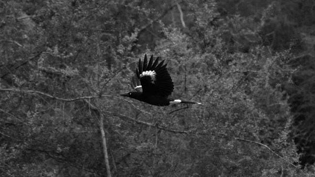 I’m glad this photo turned out as well as it did in monochrome as it was rather unpleasant in colour. Shame the background isn’t a little sharper, but the pied currawong looks quite good, I think.