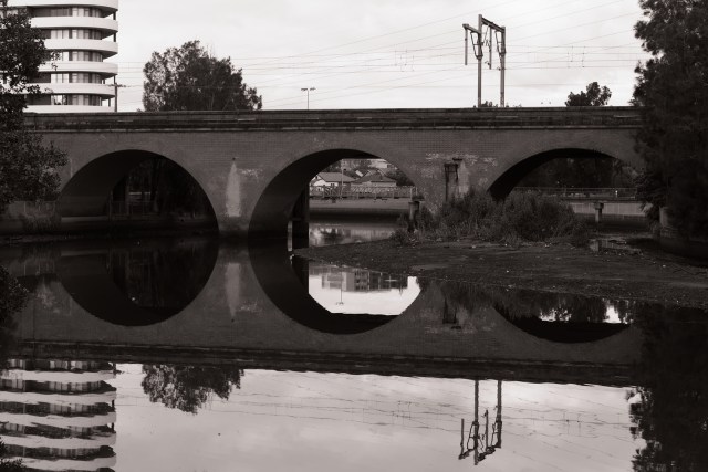 In regards to what is in the image, I like how the stretch of built up soil cuts into the reflection as well as part of the bridge. It’s a bit of noise in the scene that I quite like.
