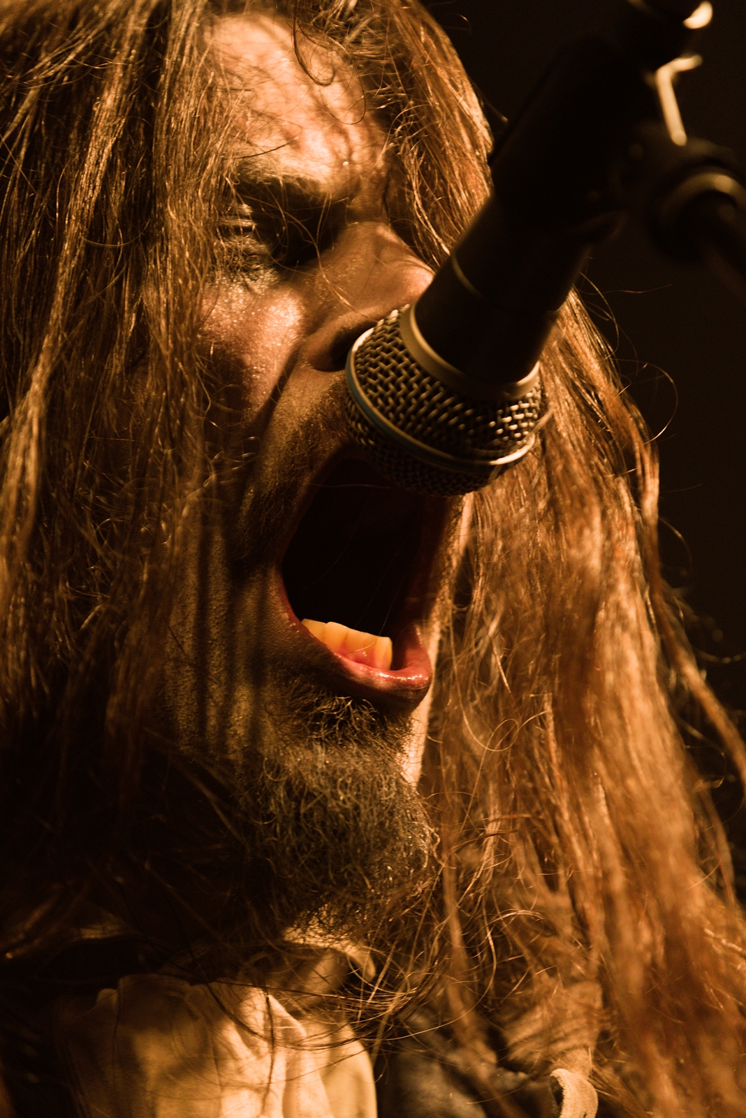 Another shot of this musician, but this time just before he is about to eat is microphone.