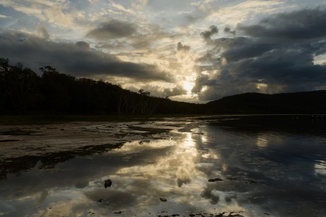 I feel as though this has a good balance of light and detail. I like that the sunset (or at least the suggestion of) is captured clearly, but the clouds are still quite visible in both the sky and the reflection.
