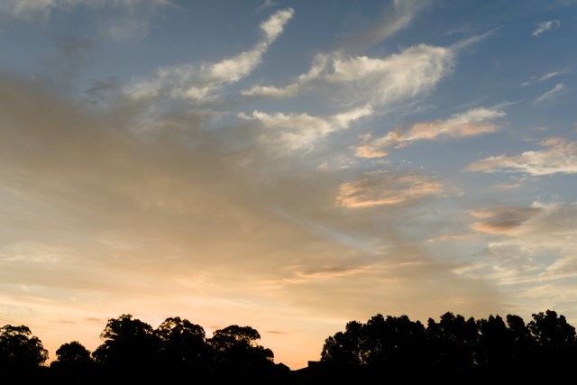 I feel as though this photo makes the clouds appear as almost though they are the only thing affected by the sunset and thus are spreading it across the sky. It makes for a relaxing scene, I think.