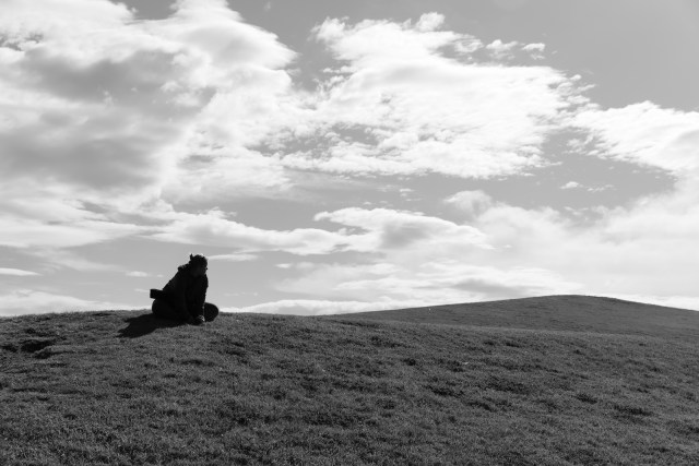 I like this shot as the person feels small, and the top of the hill distant. Relative to the size of the hill the person is small, but the hilltop is closer than it appears. I also like how there’s a strong sense of space and perhaps also calm. It’s a relaxed stop during a relaxed walk.