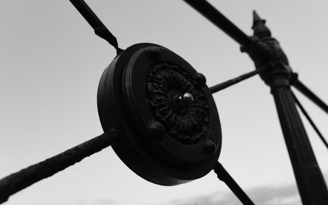 There’s a bit of a bleakness with this one that I like. Maybe it’s to do with the light contrast. Maybe it’s to do with the this bit of design being framed by what feels like rigid structure. Maybe it’s the visible damage some of the fence.