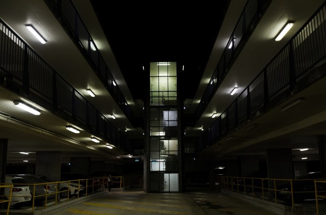 This one has a dingy feel to it, I think. I imagine it would look different during the day, but here it doesn’t look like the kind of place you’d want to be. The lighting is enough to know where you’re going, but it feels like an attempt to be clinical without quite succeeding.