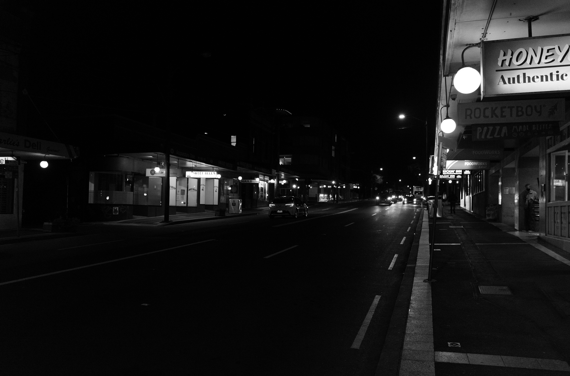 I feel like I may have gone a little too heavy with pushing the dark, but I like how it makes the photo feel that little bit emptier and quieter. That said, there are enough things in this photo that I feel make things a little bit less quiet, such as the oncoming traffic and the (admittedly few) people wandering about.