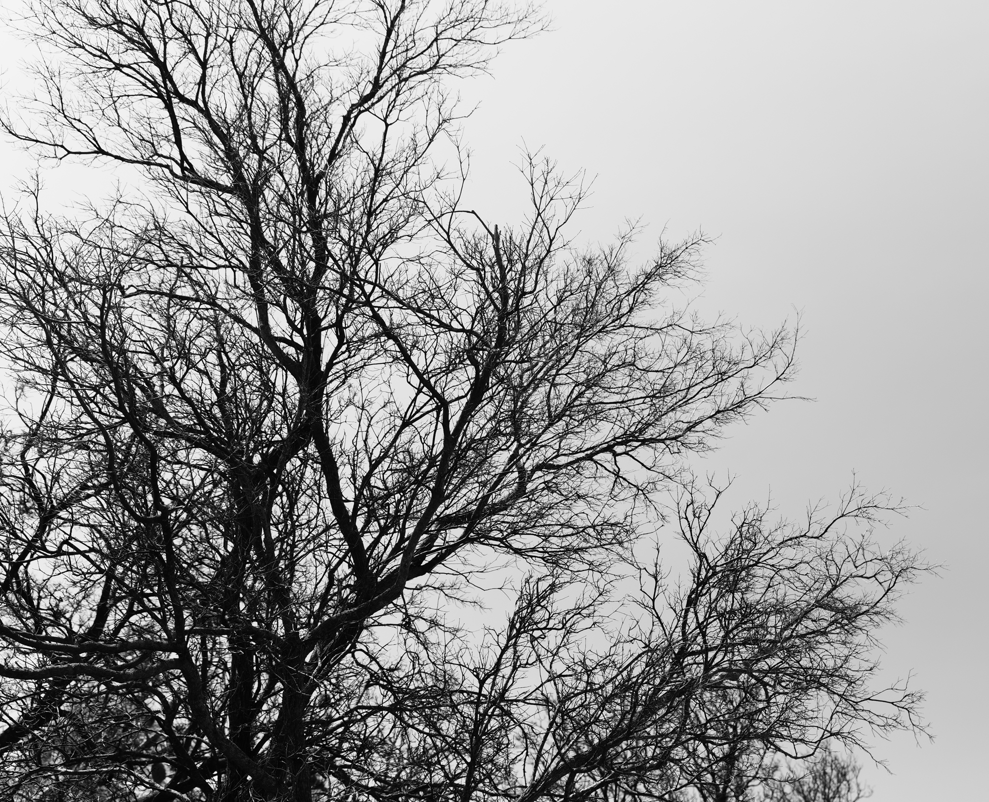These ones are bare due to fire. They look almost like river systems and, due to the way the branches sit over each other, almost seem like they aren’t bare.