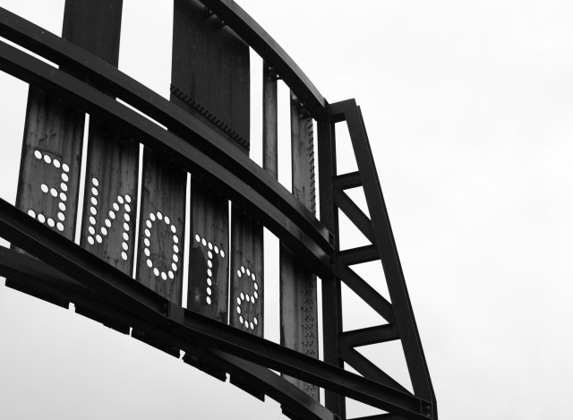 Anyway, I like the framing in this shot. I think there’s a good deal of uncluttered space, helping to draw focus to the word. I also like how the structure comes through with a sort of cold feel.