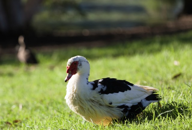 Probably could’ve done better with the light as this isn’t exactly a good photo, but at least it shows the muscovy duck as what it is: a muscovy duck.