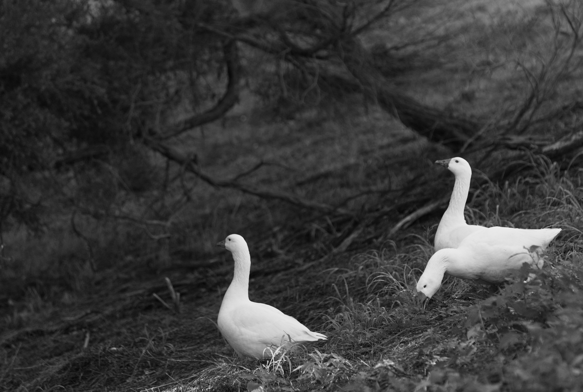 When I saw these geese I tried to frame them in a particular way as I like how they were positioned on the incline. There was something about it that appealed to me. I think it may have had to do with how the geese were standing and how they almost seemed dramatic in this particular spot.
