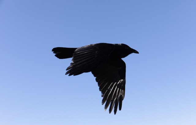 Not a great photo but I like how still the raven appears. I also like how it almost seems like a silhouette.
