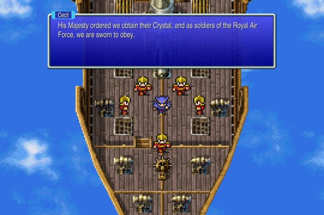 Final Fantasy IV saw Square move toward an overall greater focus on narrative and character development. People have motivations and desires that are more developed than previous games, there are various arcs, and some depth beyond the surface. It’s pretty simple and relatively primitive stuff – given the game’s age you’d hope that’d be the case – but it’s still effective. That said, the dialogue in this version of the game takes a bit of a dive.