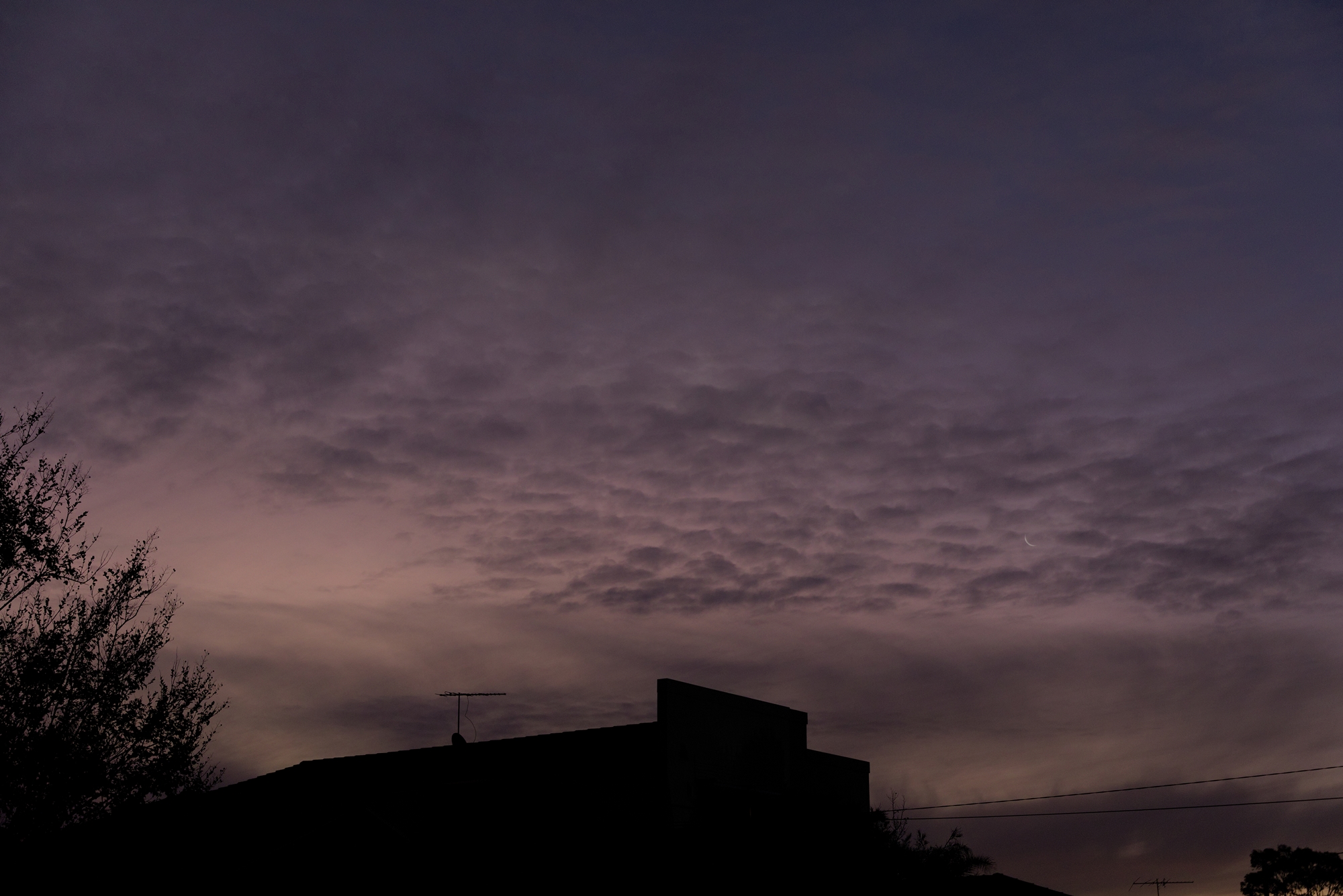 I like how the silhouette here feels quite urban with very little, and maybe that’s due to the building’s shape being both clear and implied. What is visible sits under a shifting sky, small, quiet and perhaps important.