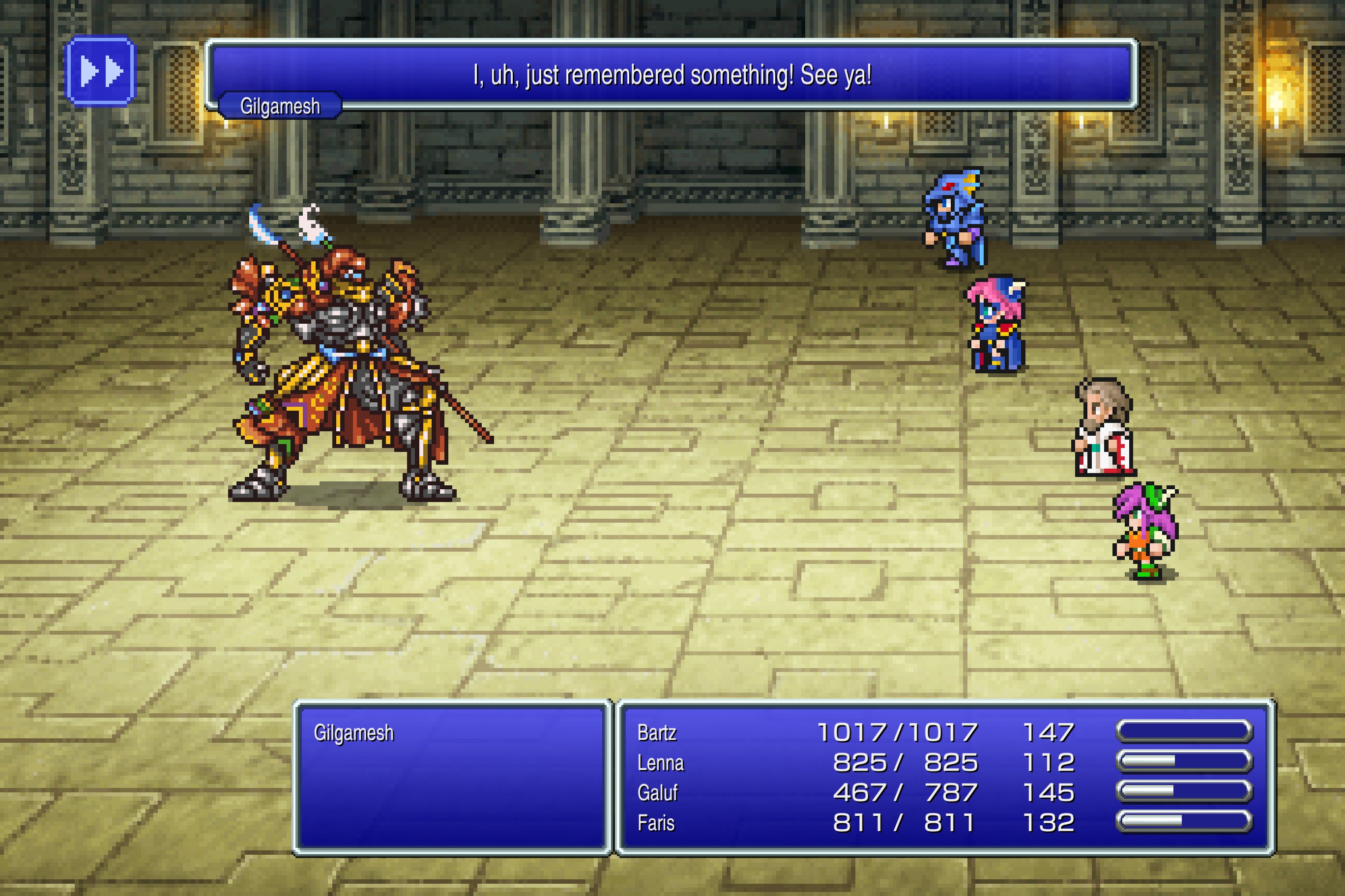 Now (or, at least a good few months ago) Final Fantasy V sees itself re-re-re-re-re-released as the fifth entry as part of The Final Fantasy Pixel Remaster series, which focuses on providing the first six Final Fantasy games a fresh coat of old paint.