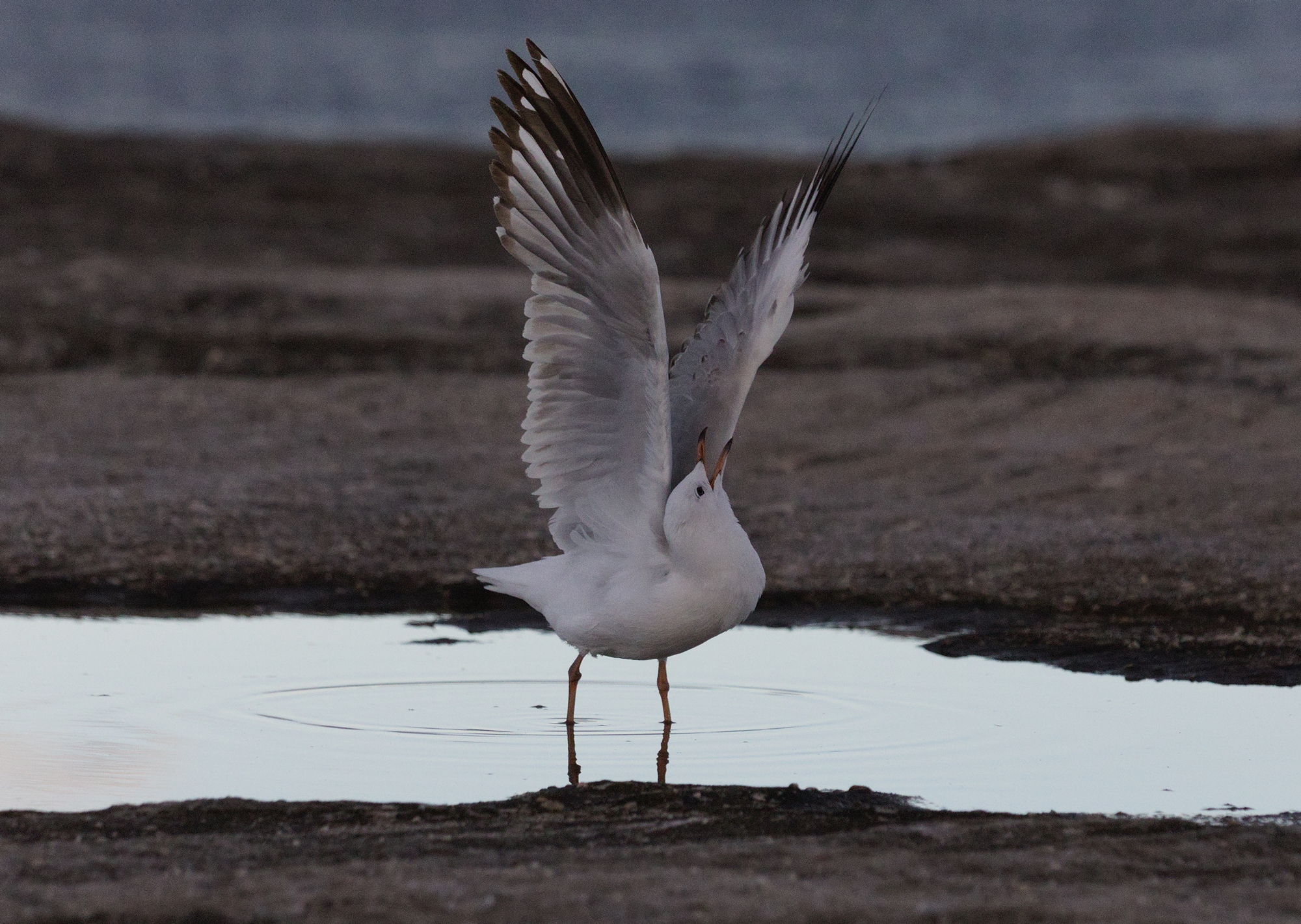 I’m not sure why this silver gull did this particular pose. Then again, I may be remembering this incorrectly and it wasn’t so much a stop as it was a brief hold before completing the motion.