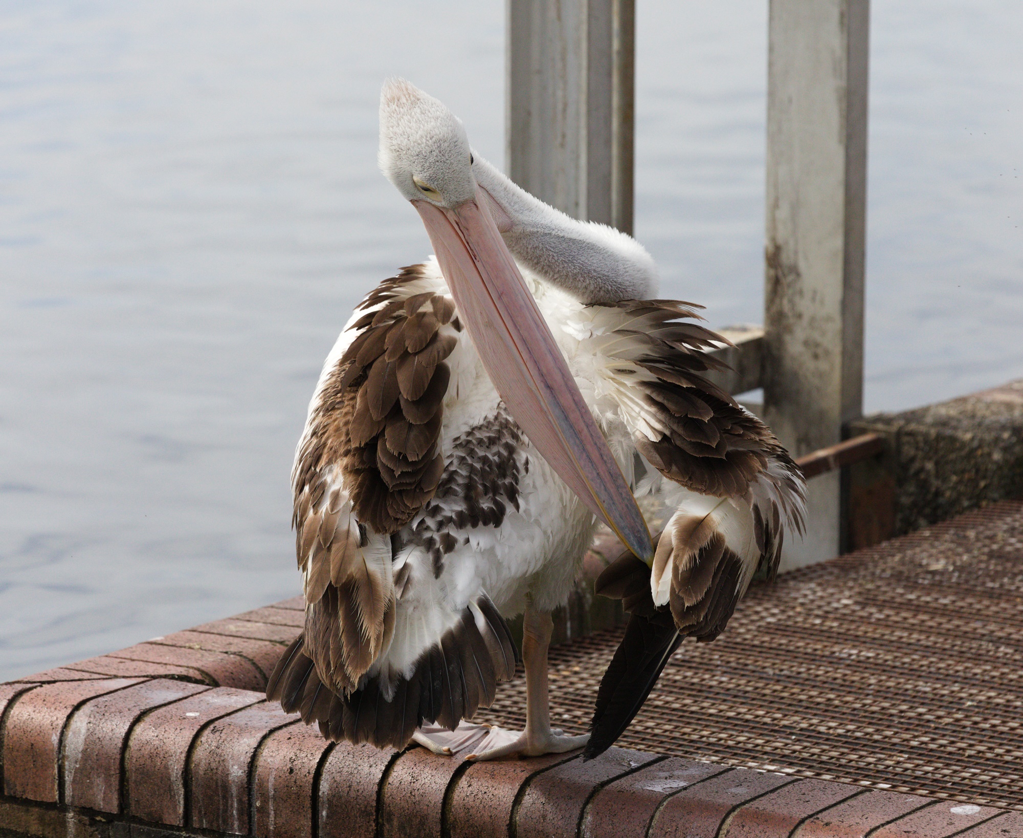 Another photo of a pelican cleaning itself, and another one where it feels a bit odd, I guess. But it feels natural too.
