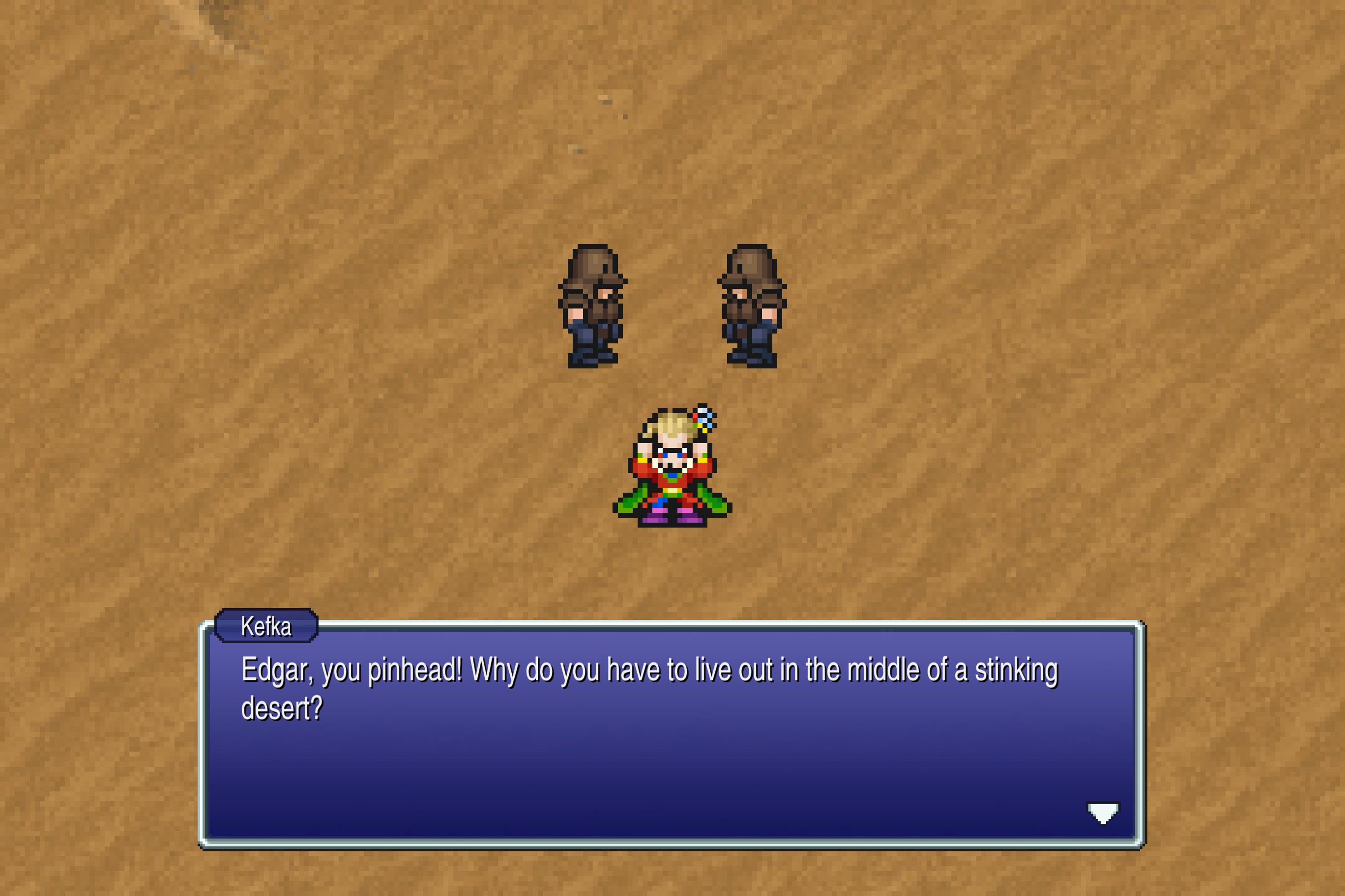Further to that, I don’t understand is why Square Enix were willing to change the opera scenario, but not add characterisation in VI‘s second half as by that point most characters may as well not be there once their stories conclude. I imagine that, due to how the second half operates, time and space limitations made universal dialogue a necessity for the original version. Accounting for who is and is not present in a given scenario would have taken a while. Fair enough. Maybe Square Enix thought about adding and decided not to for whatever reason. Admittedly the opera scenario already has a firm base to work from. It’s an important scene too, for what they were doing as a developer, for the game’s plot, and for the fanbase.