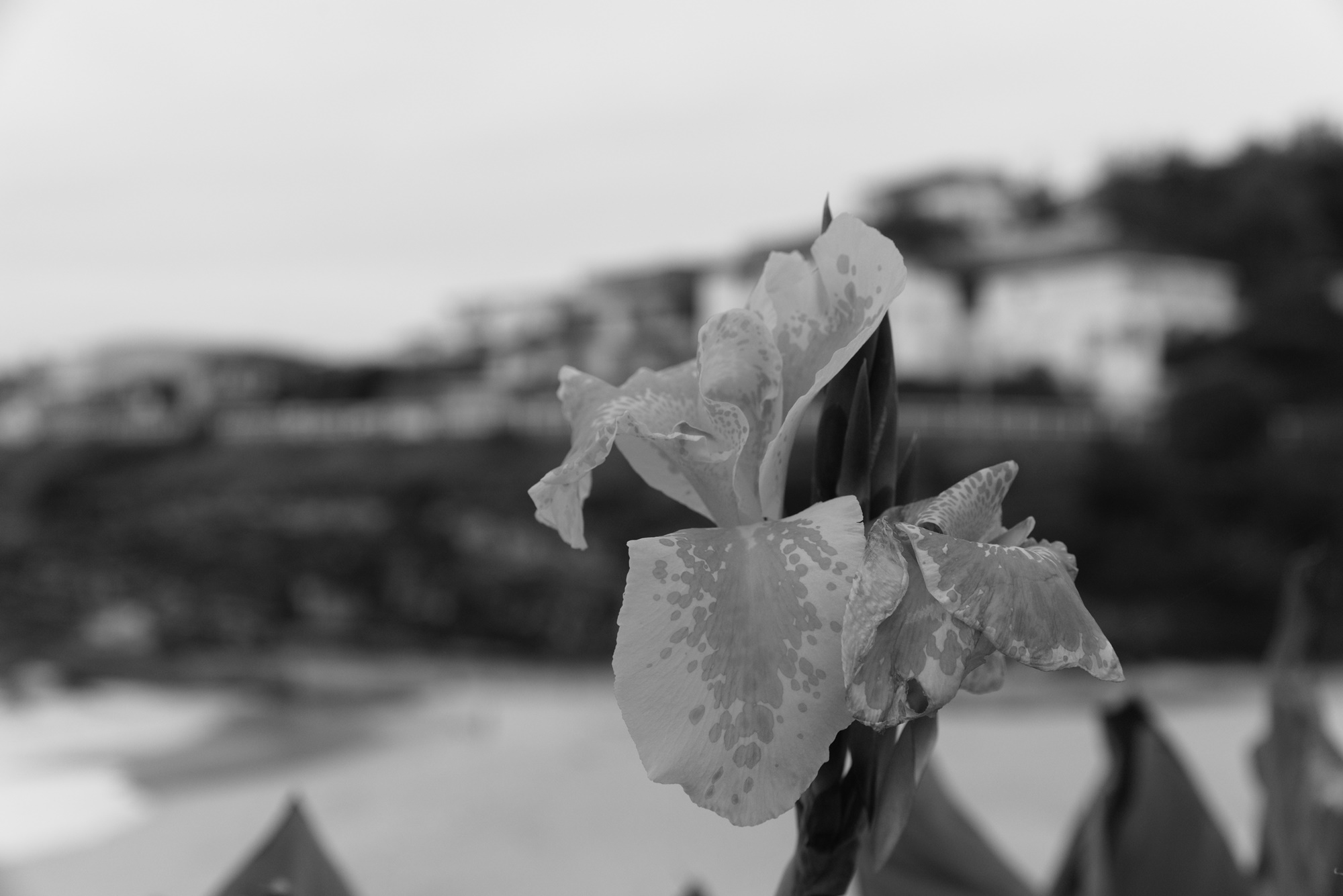 What I’ve learned is that this flower is likely a Canna ‘Yellow King Humbert’ Burbank. I saw it at last year’s Sculpture by the Sea. Thought there was something interesting about the contrast between it and the surrounds. Didn’t draw that out enough, but I’m still happy with the photo.