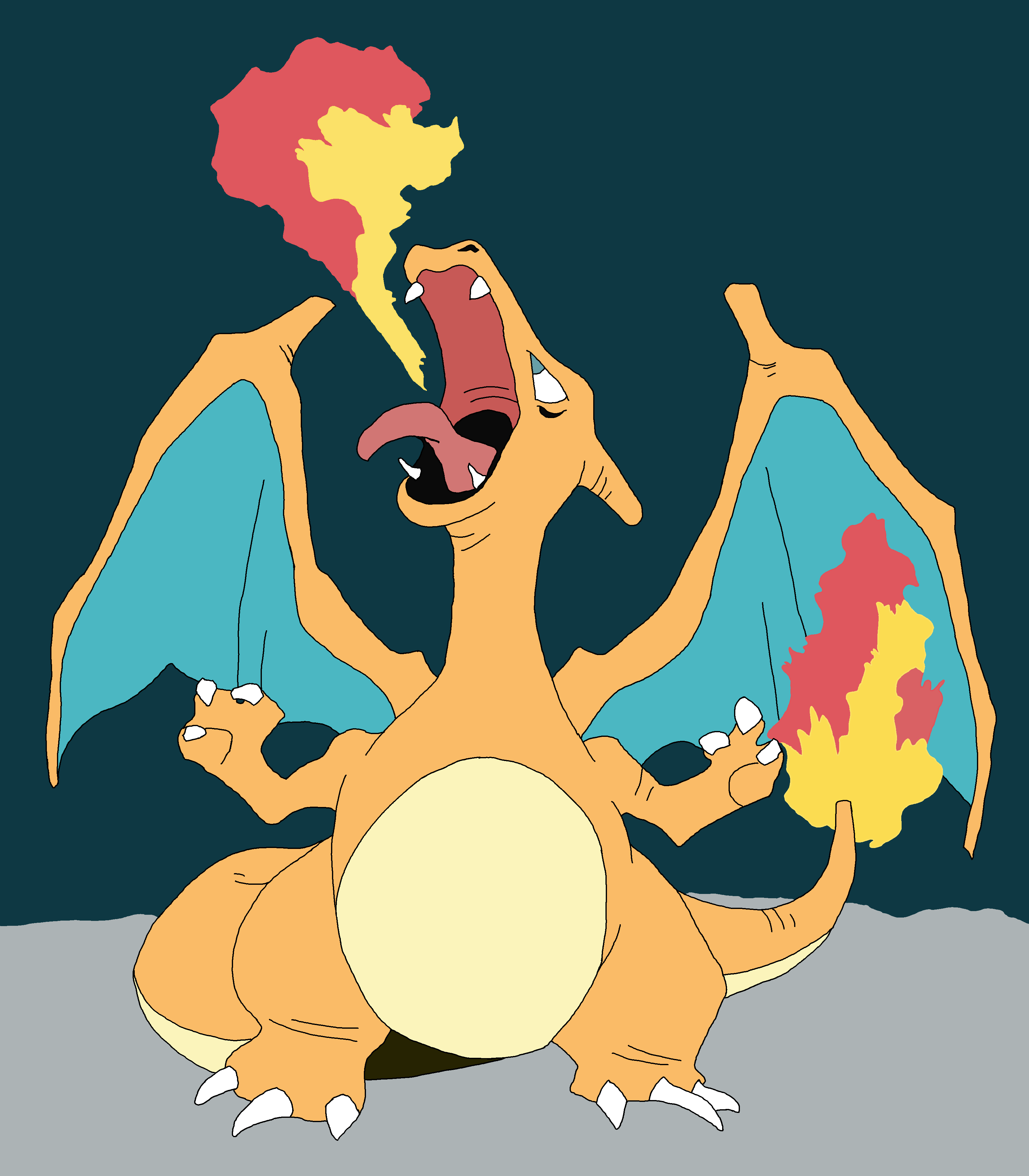 I was going to do more light-based shading, but I didn’t for some reason. Also thought it’d be interesting to put charizard in a cave, but then decided to put it under a night sky… which ended up looking like a cave.